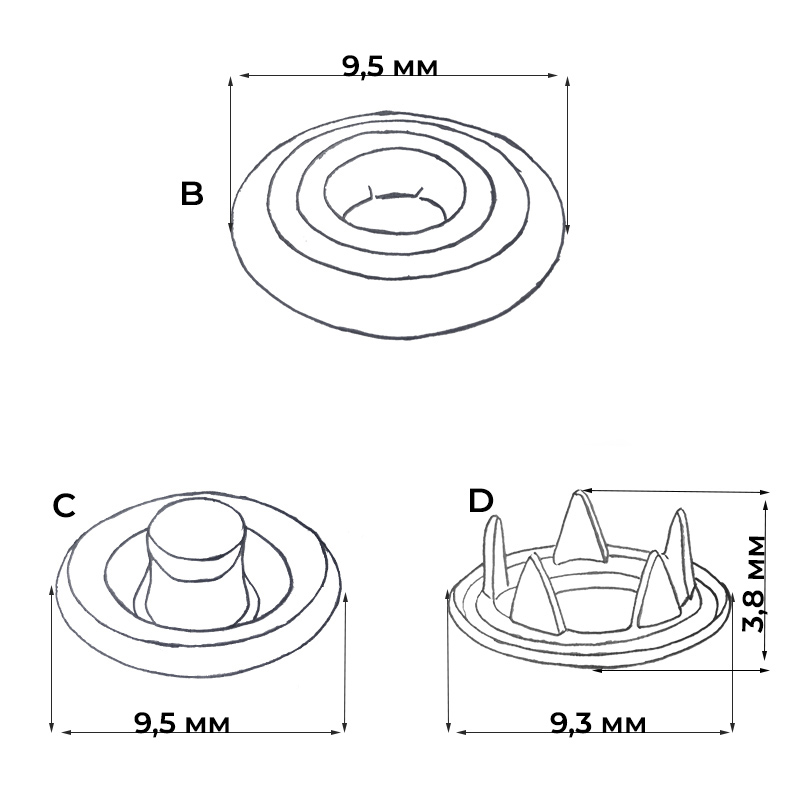 Зубчики прочно держат кнопку и не повреждают материал.