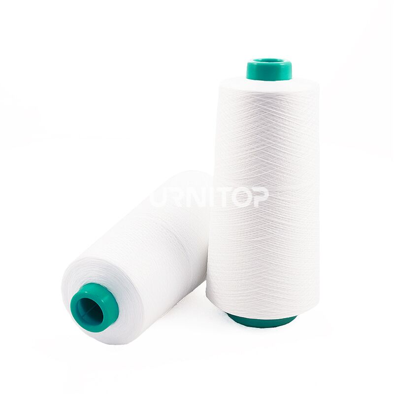 — Нитка с прочным стержнем из непрерывных нитей. Стержень плотно обкручивается штапельными нитями из полиэстера. Получается прочная, компактная нитка. Более мягкая и матовая, чем комплексная полиэфирная.
