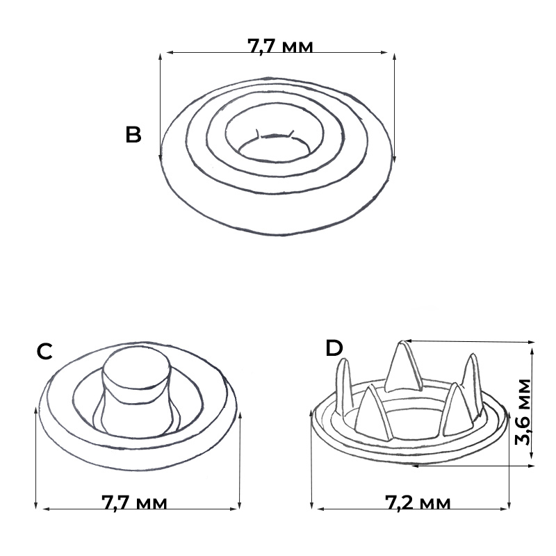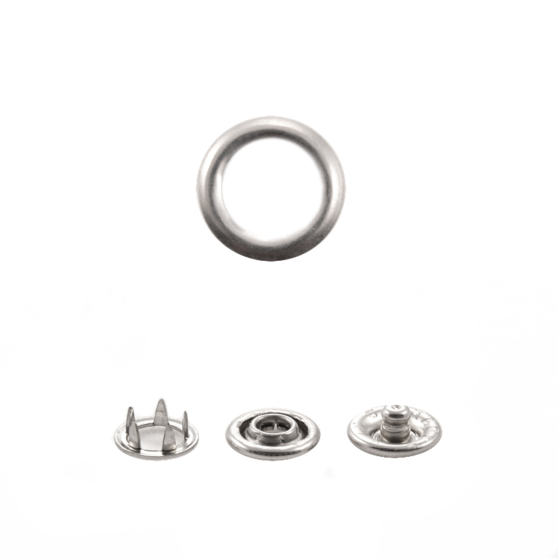 Трикотажная зубчатая латунная кнопка со шляпкой в виде кольца Характеристика кнопки - Кнопка крепится зубчиками, которые сами прокалывают материал.